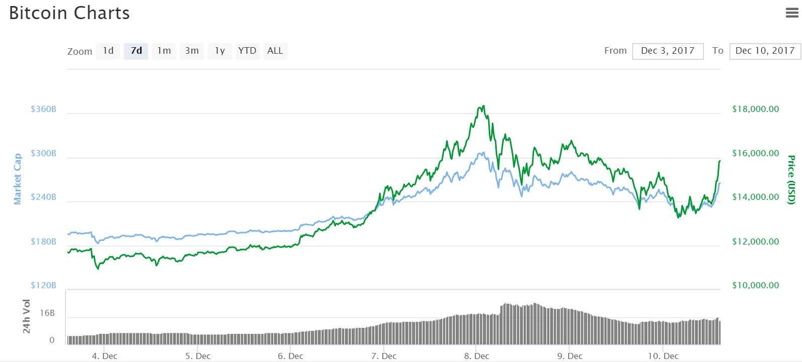 Bitcoin is inherently volatile, and the advent of futures might further exacerbate volatility. In effect, hours before CBOE’s launch of the futures contracts, the cryptocurrency market was jittery, as shown by the wild swings of Bitcoin’s prices. Bitcoin’s price dipped from over $18,000 USD on December 8, hitting low of around $13,000 USD on December 10, 2017, before swinging upward again to its current price of just over $15,000.