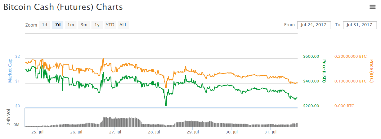 ViaBTC currently has a futures market for BitcoinCash, and it currently sits at around $311.59, or about 12% of Bitcoin’s current market price. Only time will tell if this coin will gain traction, or be crushed by the thousands of people ready to dump the moment the fork occurs.
