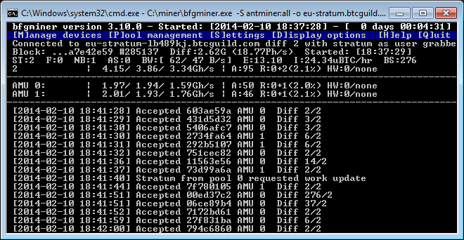 6) Double click the shortcut to start BFGminer and start mining.