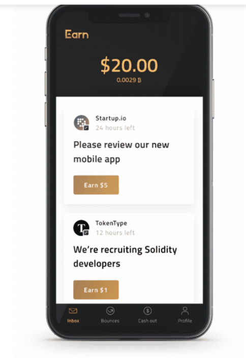 Earn.com allows senders to pay users in digital currency for replying to emails and completing tasks. Relative to the status quo, the introduction of payments benefits both normal email users and large-scale senders of commercial emails.