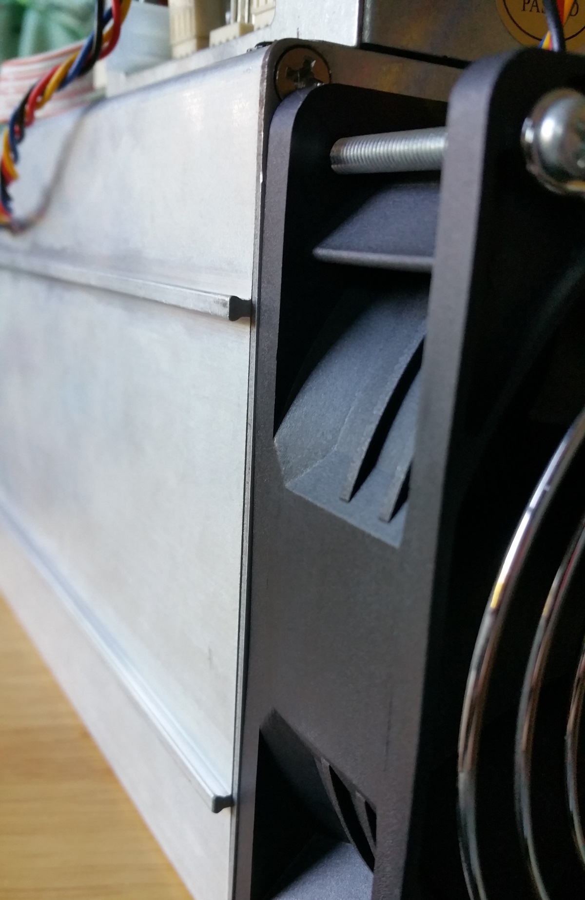 The S7 arrived fast and with no damage. The Antminer S7 is built solidly with a dual push-pull fan system. The S7 is roughly the same size as the S5 and packs a lot of power in a small package. The housing has a new twist to it, in that you can connect 3 of them together at the sides with a tongue and groove system. I say three of them, as each controller has the connections to run three S7s at the same time. This stacking option will allow for several different ways to deploy them. We were unable to test how many at a time the controller will run as at this time we only have the one S7. Being able to stack them together even if you are not using one controller for multiple units is a plus. It can make for more secure arrangements in your racks and shelving.