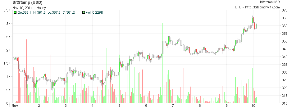 Bitcoin is yet again recovering from its weekly low of $321 and is currently sitting at $360 range, around a 10% increase in the last 10 days.