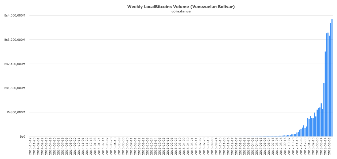 Now, interest in the country is so strong that volume on the peer-to-peer trading platform LocalBitcoin keeps setting new records on a weekly basis. Over 3,870,000,000,000 VEF in bitcoin was traded last week on LocalBitcoins, alone.