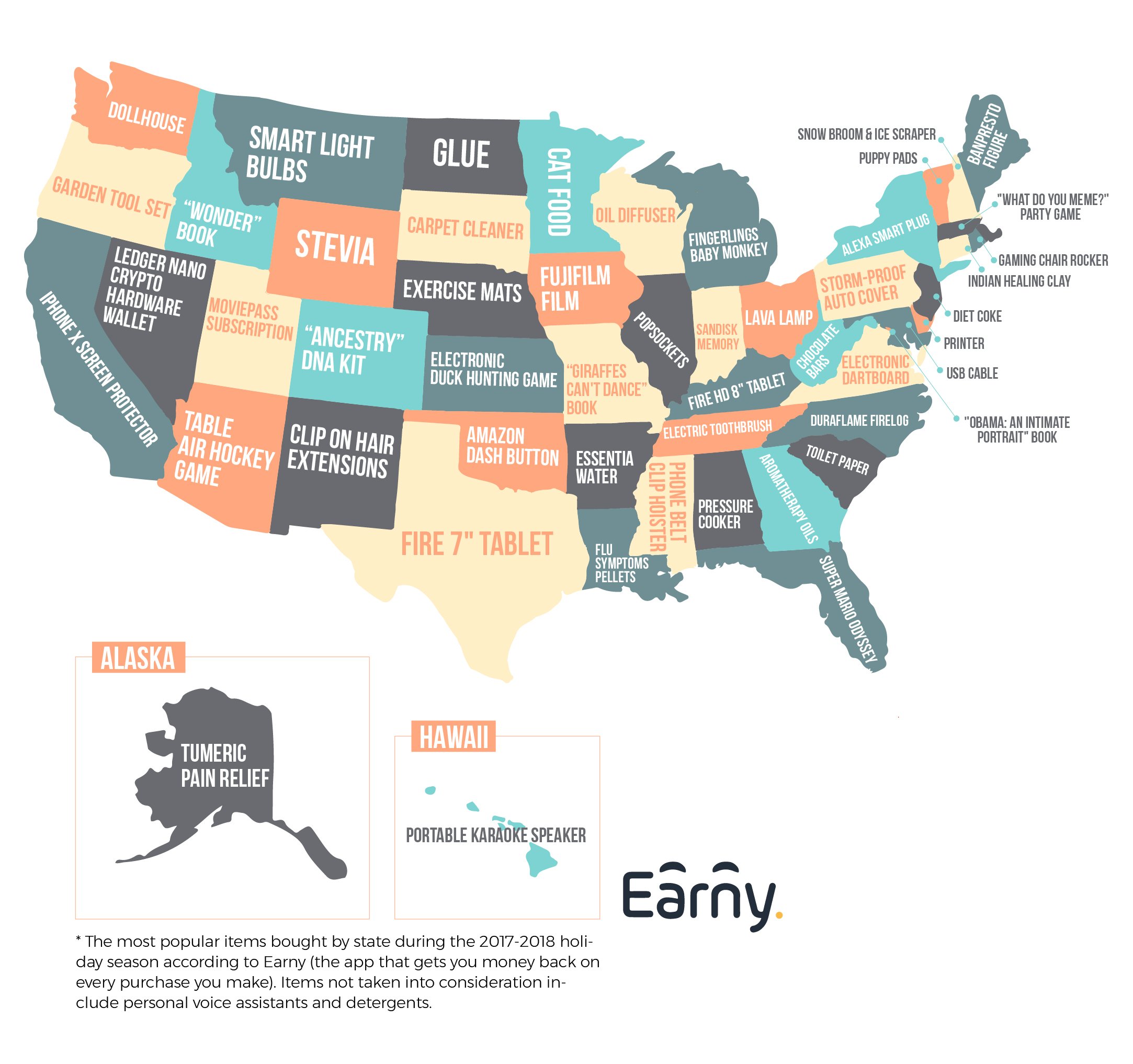 Earny did exclude purchases of Amazon Echo, Apple’s HomePod, and detergents as these were the most popular items in every state across the whole study.