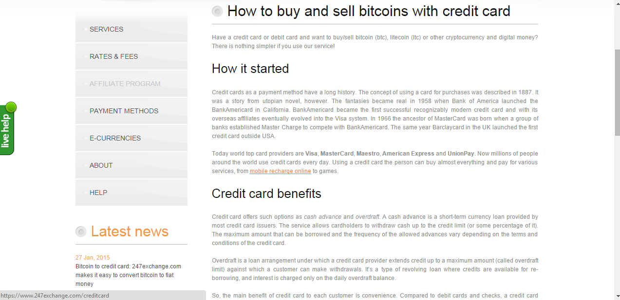 This innovation discovers new possibilities for crypto-users and the whole crypto-business at all. It’s very helpful option for everyone who gets his salary and income in bitcoins and other cryptocurrencies. At 247exchange.com website users can also purchase cryptocurrency with credit or debit cards. That’s how our service “connects” bitcoins with cards building the global exchange platform.Also, the feature is helpful for miners. They can withdraw their profit directly to their cards for the current needs or, for example, to pay for electricity. Beside Bitcoin we already accept Litecoin, Peercoin, Namecoin and more cryptos coming soon. The option also allows a person to pay for the loans with bitcoins and other cryptos. Using a bank wire is usually much more expensive for such payments (because of the bank fee) and much more complex.