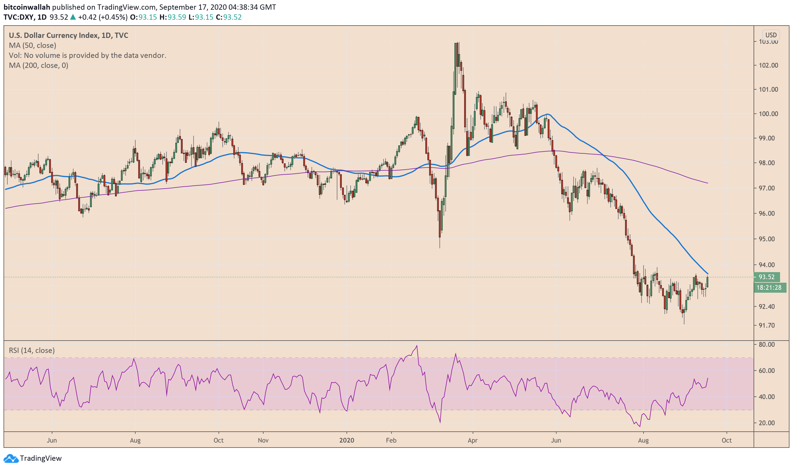 With President Trump’s accommodative comments ahead of the presidential elections, it appears the US Congress would come closer to meeting the Democrats’ demand of a $2.2 trillion stimulus package. That would weaken the US dollar further, and in turn, benefit Bitcoin.