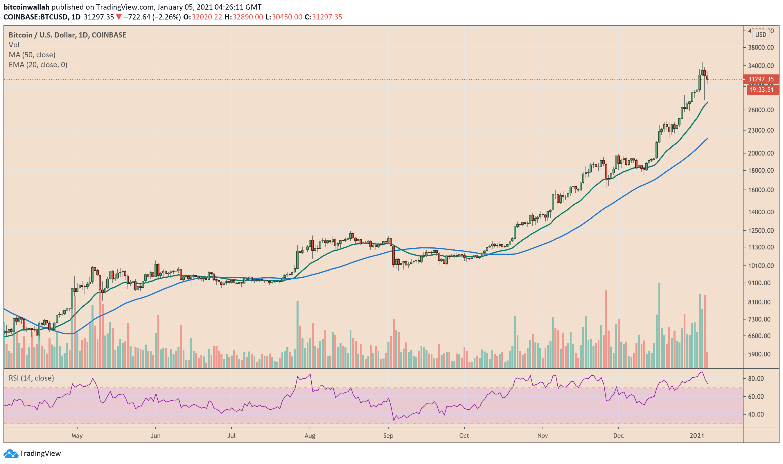 That served as one of the major reminders why the ongoing Bitcoin price rally—an explosive surge from $3,858 in March to $34,810 in January—is entirely different from its notorious bull run in December 2017. Here, every dip is attracting a fresh wave of buyers, confirming that the cryptocurrency could continue its upside move further into 2021.