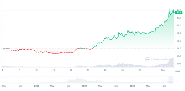 Its Cross-Chain Interoperability Protocol (CCIP) allows for cross-chain transfer of assets, which is an extremely valuable utility for finance companies. TradFi giants such as SWIFT, DTCC and the ANZ Banking Group recently partnered with Chainlink to successfully test CCIP’s blockchain interoperability, which is a mark of its high demand.