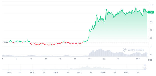 Thanks to this rapid adoption, $LINK has surged close to 35% over the past month and is currently priced near the $10.75 price mark.