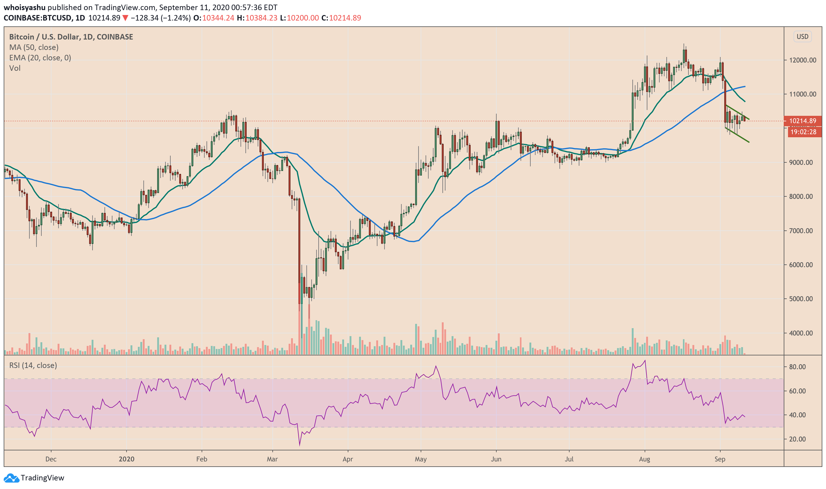 BTC/USD was trading 1.04 lower at $10,235 at the time of this writing.