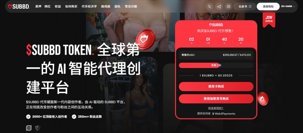 粉丝也能受益,通过XP倍增器提高他们在抽奖、游戏和其他互动活动中的获奖机会。$SUBBD的设计内置了需求,这也是为什么预售迅速吸引关注的原因。经过三周的进展,资金正在加速流入,50万美元触手可及。