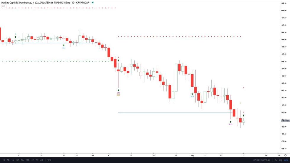 - With many altcoins outpacing BTC, the Bitcoin dominance metric has plunged. Bitcoin dominance is the percentage of the crypto market made up of BTC.
