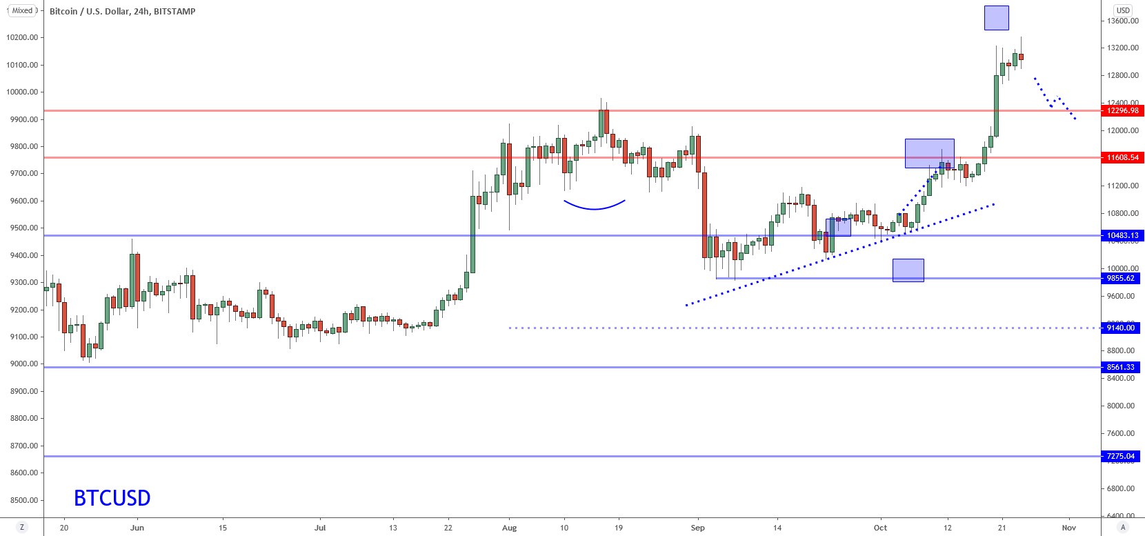 Fundamentally, the cryptocurrency shows demand near the $11,600-$12,300 area. In an email statement to Bitcoinist, CEX.io’s Executive Director Konstantin Anissimov noted that “Bitcoin has brought a lot of attention to the crypto market” as major firms add it to their reserves as a hedge against currency devaluation.