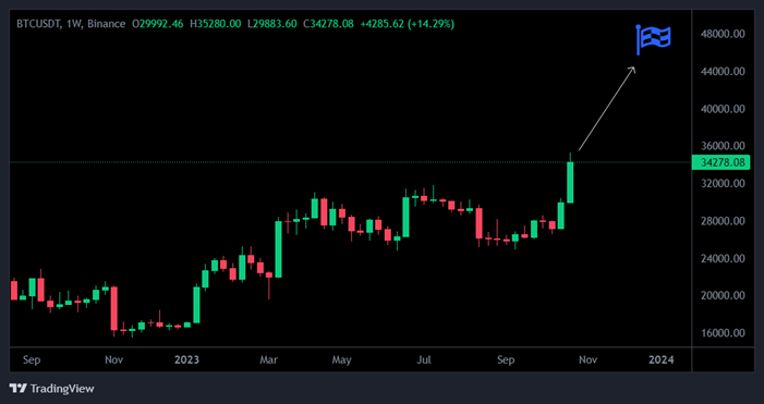 However, a DTCC spokesperson later clarified that the ticker has been on the website since August. Yet, the Bitcoin price continues to trade above the $34,000 price mark, highlighting the market’s confidence that the SEC’s green light is inevitable.