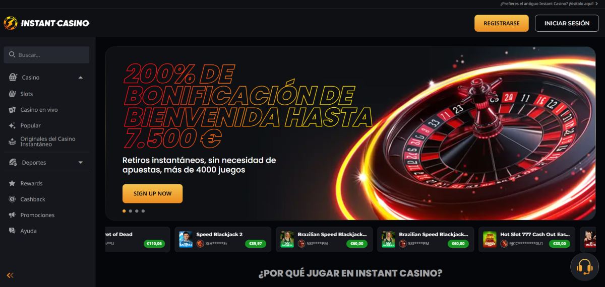 200% en Bono de bienvenida hasta 7500€ + 10% de Cashback