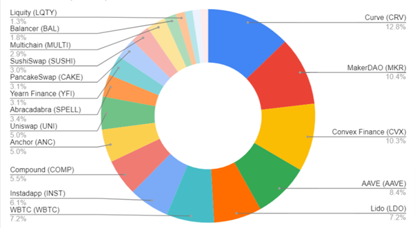 By Dec 2021, the TVL of DeFi jumped more than1000x, reaching $322.41 billion. You can see the Top 20 coins and projects below.