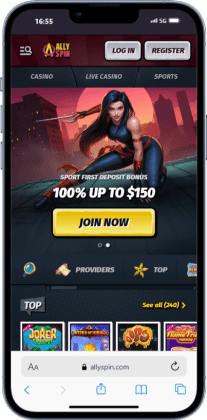 4. Allyspin – Best site for big bonuses and a built-in sportsbook