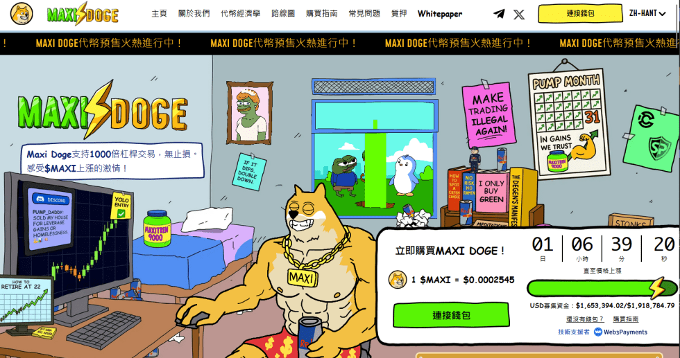 在健身房的幹勁和高槓桿交易的能量驅動下,Maxi Doge ($MAXI) 是2025年推出的最新狗狗主題迷因幣之一。該項目以半癡狂、超充能的Maxi Doge角色,掀起一場由迷因推動的運動。