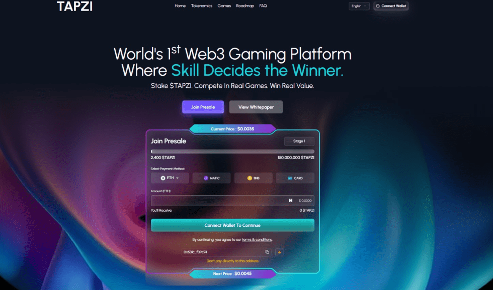 Tapzi目前正進行預售,價格為$0.0035,預計上市價格為$0.009,為早期參與者提供高達三倍潛在報酬。該代幣支援質押並提供專屬用戶福利。雖然目前平台遊戲種類仍有限,但Tapzi在設計理念上樹立了Web3遊戲的新標準,特別適合偏好實力對戰玩家。