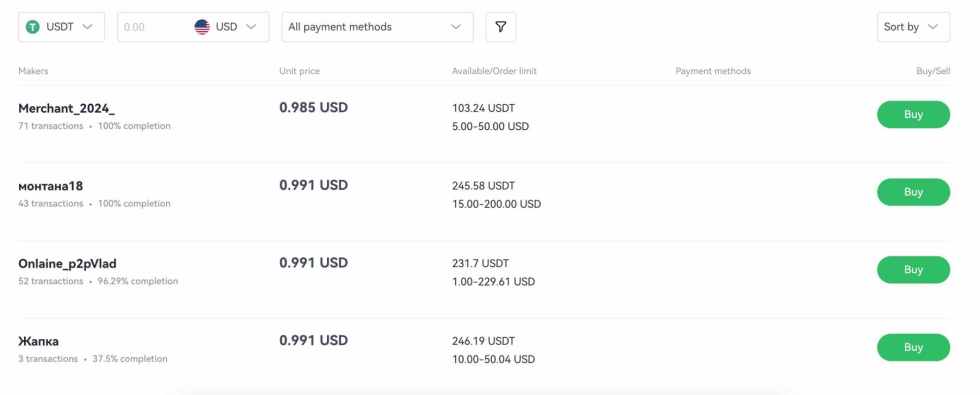 如果您想快速完成交易,後者將非常重要。點擊P2P賣家會顯示更多信息,讓買家做出明智的決定。所有P2P交易均透過Bin託管,以提高安全性。不收取額外費用。請注意,雖然接受美元,但美國客戶不能使用P2P平台。