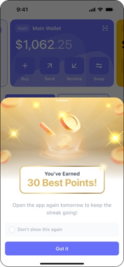 Best Wallet 的 gamification 系統引入了動態積分引擎、每日任務和連續登錄獎勵。