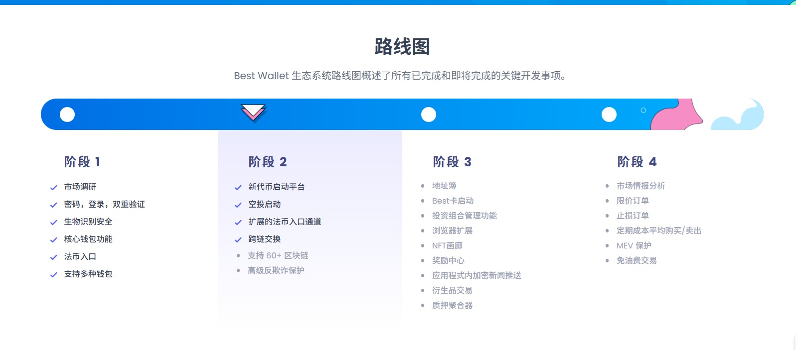 其原生代幣BEST將在這一轉變中發揮關鍵作用。按照路線圖的第四階段,使用者將享有免Gas交易和自動定投買/賣功能 —— 這兩項功能,即使在一線錢包中也極為罕見。