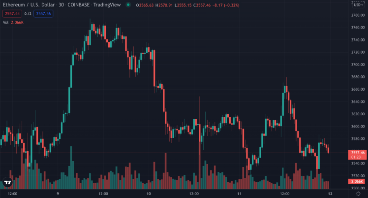 EtherRocks are one of the 'OG' NFT projects that launched on Ethereum; this EtherRock lister is probably wishing they had 'diamond-handed' the project after accidentally listing their NFT for 444 wei instead of 444 ETH. | Source: ETH-USD on TradingView.com