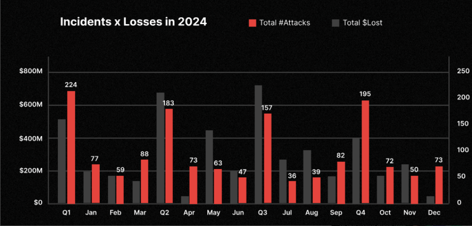 Hacking incidents in 2024 as recorded by month. Source: CertiK