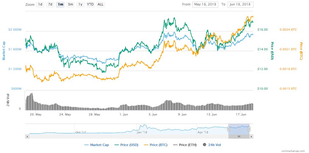 At the time of writing this, BNB is trading at $16.97 — comprising an increase of almost 3 percent. For the last two weeks, however, Binance Coin has performed exceptionally well. On June 4, the coin marked a daily low of $13.72, meaning that it has made a flawless recovery, spiking by almost 20 percent to reach its current trading price.