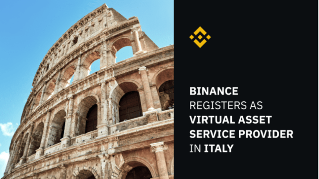 Binance Italy is now registered as a digital asset service provider with Organismo Agenti e Mediatori.