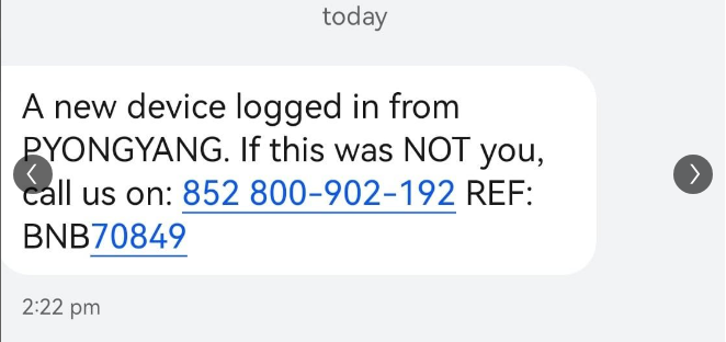“It told me my Binance account is being accessed from North Korea.”