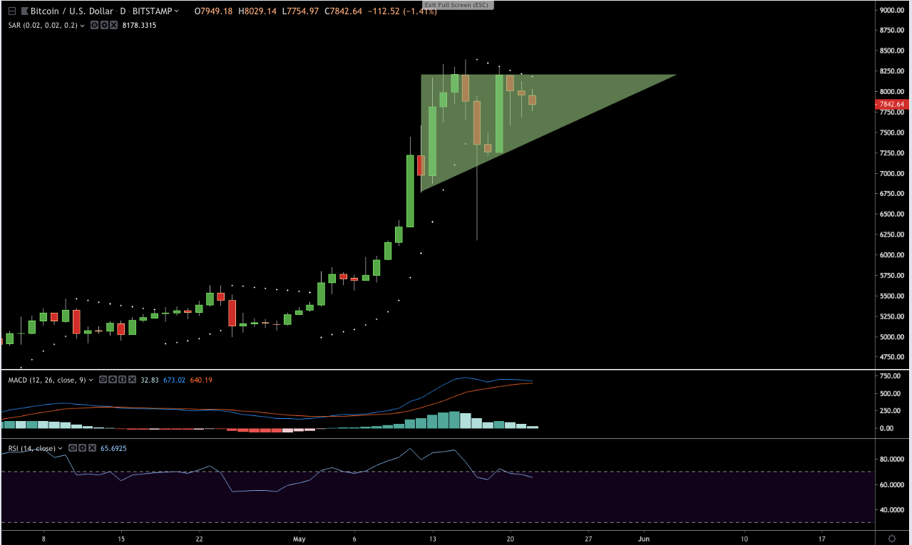 From there, the asset typically breaks bullish towards a new high. In this case, the next strong resistance for BTC is likely to be around $9,000 as bullish traders edge closer towards the fabled $10,000 mark.