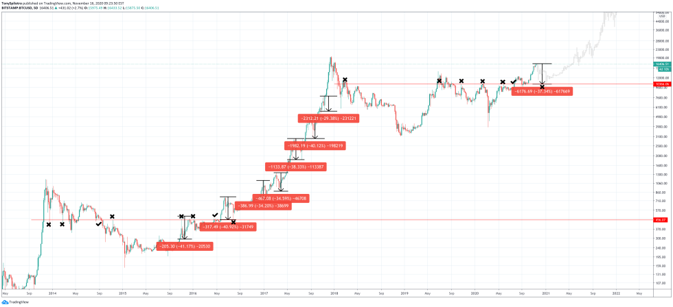 Why The Cryptocurrency Appears To Crash To The Same Key Level During Bull Runs