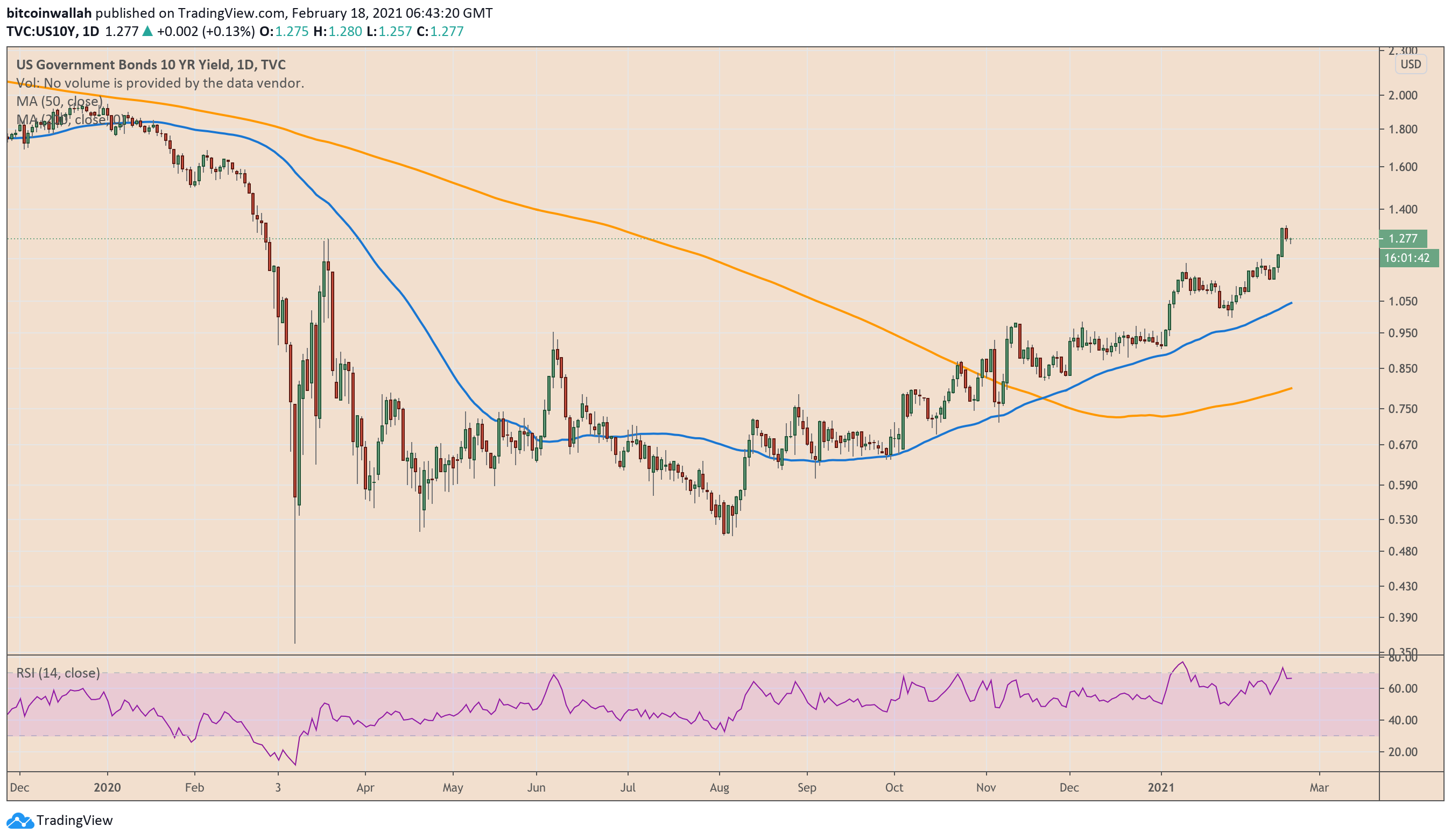 High prices and thin yields on Treasury bonds provided critical support for Bitcoin since the coronavirus-induced global market rout last March. But, against the prospects of higher inflation, yields have surged higher, with the 10-year benchmark yield touching 1.3 percent this week. It was 0.9 percent at the beginning of this year.