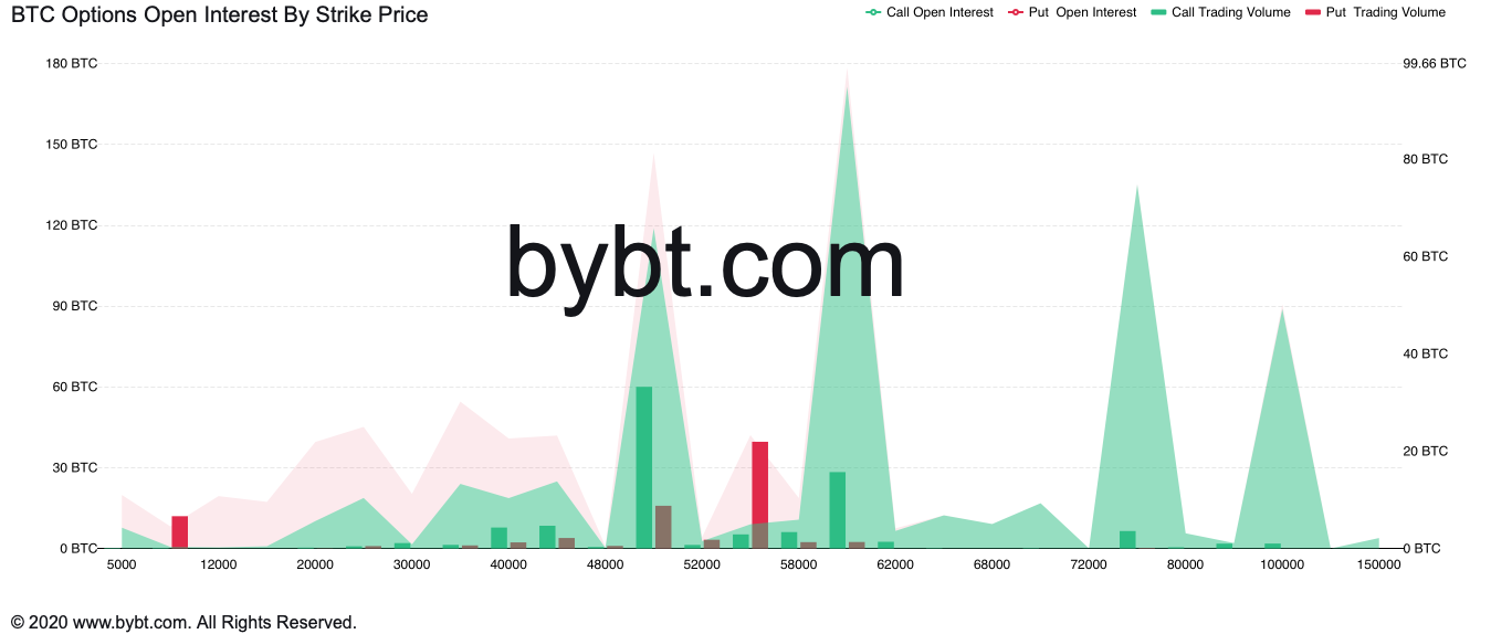The general call-to-put ratio showed bulls in control, with bets over a bitcoin price rise will leaning 11 percent higher than those with a negative price outlook. That increased the likelihood of the BTC/USD spot rate hitting $55,000, the second-most favorable strike price among bulls.