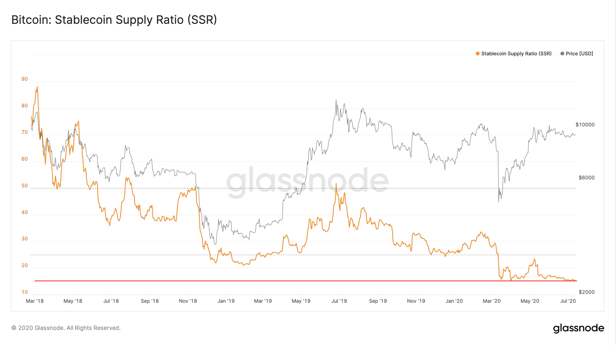 Glassnode refers to it as “readiness of money” before they flow into the bitcoin market, based on a so-called Bitcoin’s Stablecoin Supply Ratio.