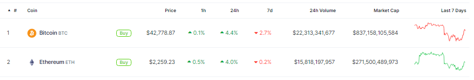 Bitcoin experienced a nearly 5% surge, reaching $42,778, following the Fed decision to maintain stable interest rates, data from Coingecko shows. The Fed’s commitment to keeping interest rates unchanged has provided a positive impetus for the cryptocurrency market, contributing to the notable uptick in Bitcoin’s value.