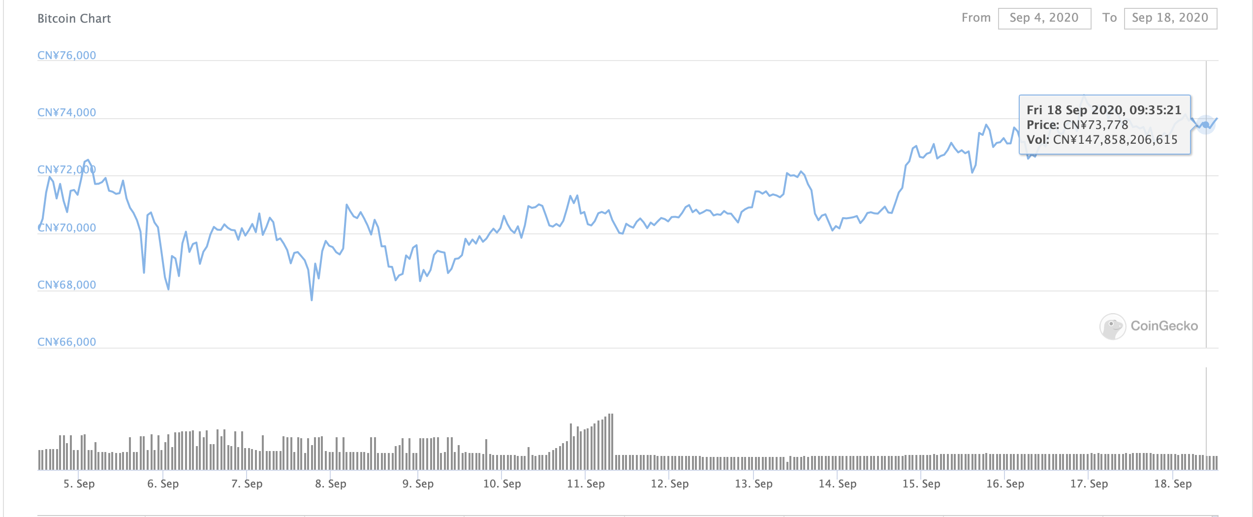 That is visible in the cryptocurrency’s recent performance against both onshore and offshore yuan. According to data provided by CoinGecko, the BTC/CNY instrument grew 5.9 percent in the last seven days (and 6 percent in the previous fourteen days). The conversion rate for one BTC as on 0700 UTC Friday was CN¥73,958.