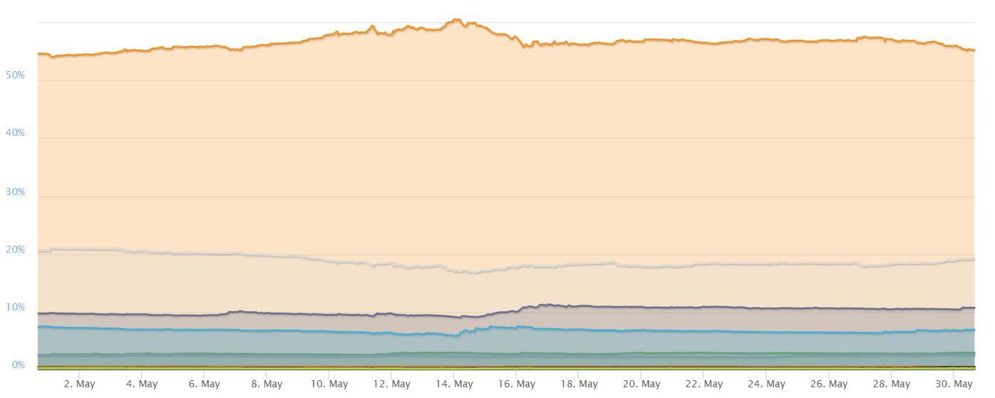 It’s also worth noting that this comes at a period during which Bitcoin’s price has actually increased. Since May 14th, BTC is up almost 10 percent. Yet, despite the increase, its overall share in the total market has declined.