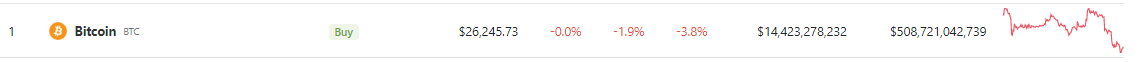 Bitcoin’s current price stands at $26,245, as reported by CoinGecko. However, recent developments have resulted in a nearly 2% slump within the past 24 hours alone. Zooming out to a broader perspective, the past week has witnessed a gradual decline of 3.8%, illustrating the volatile and ever-shifting nature of the digital asset market.