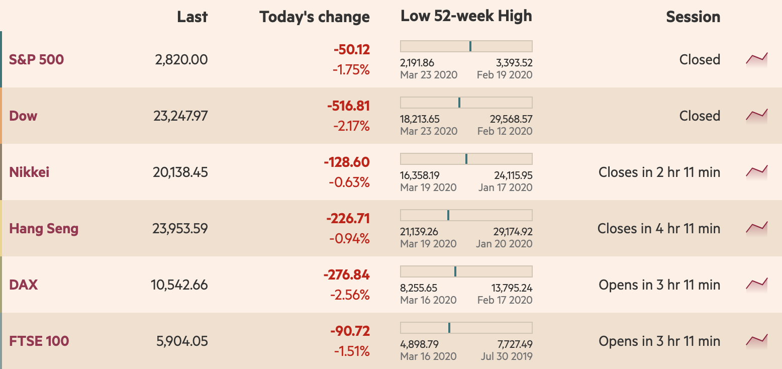 The U.S. benchmark index opened Wednesday lower after Powell’s speech early morning. Nevertheless, the Fed’s grim market outlook accelerated declines all across the Wall Street indices. The S&P 500 closed 50.12 points – or 1.7 percent – lower to 2820.00. Meanwhile, the Dow Jones and Nasdaq Composite slipped 2.2 percent and 1.5 percent, respectively.