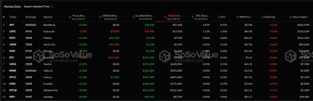 With $63 million in inflows, Fidelity’s FBTC led for two straight days; followed by Grayscale Bitcoin Mini Trust and ARK 21Shares, with $41 million and $12.7 million, respectively.