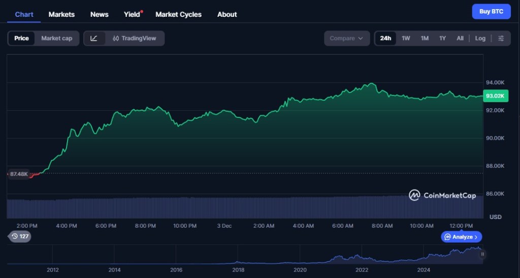 Bitcoin Preis, 3. Dezember 2025 – Quelle: CoinMarketCap