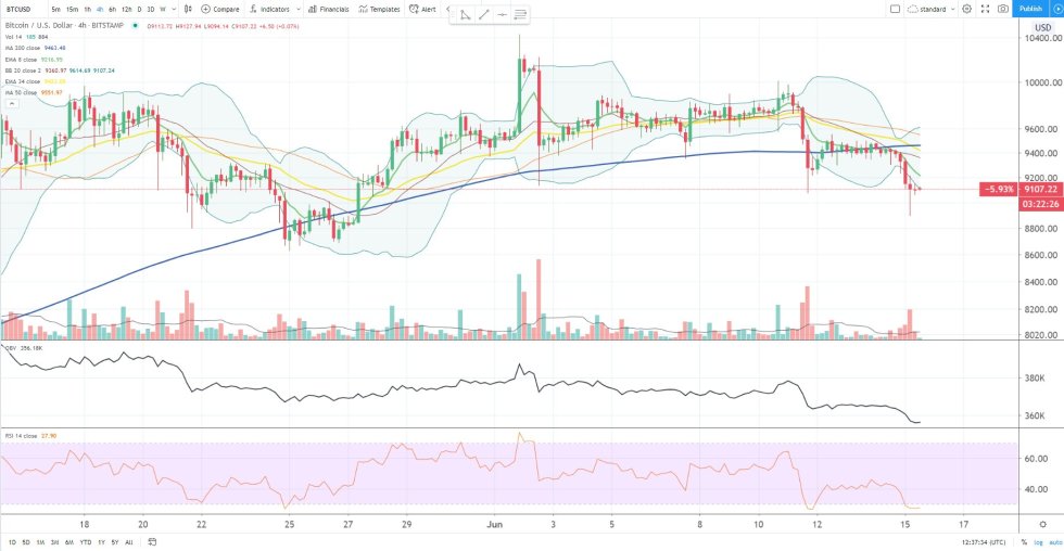 - Buyers were able to guard against the massive influx of selling pressure, supporting it above $9,000 for most of the day
