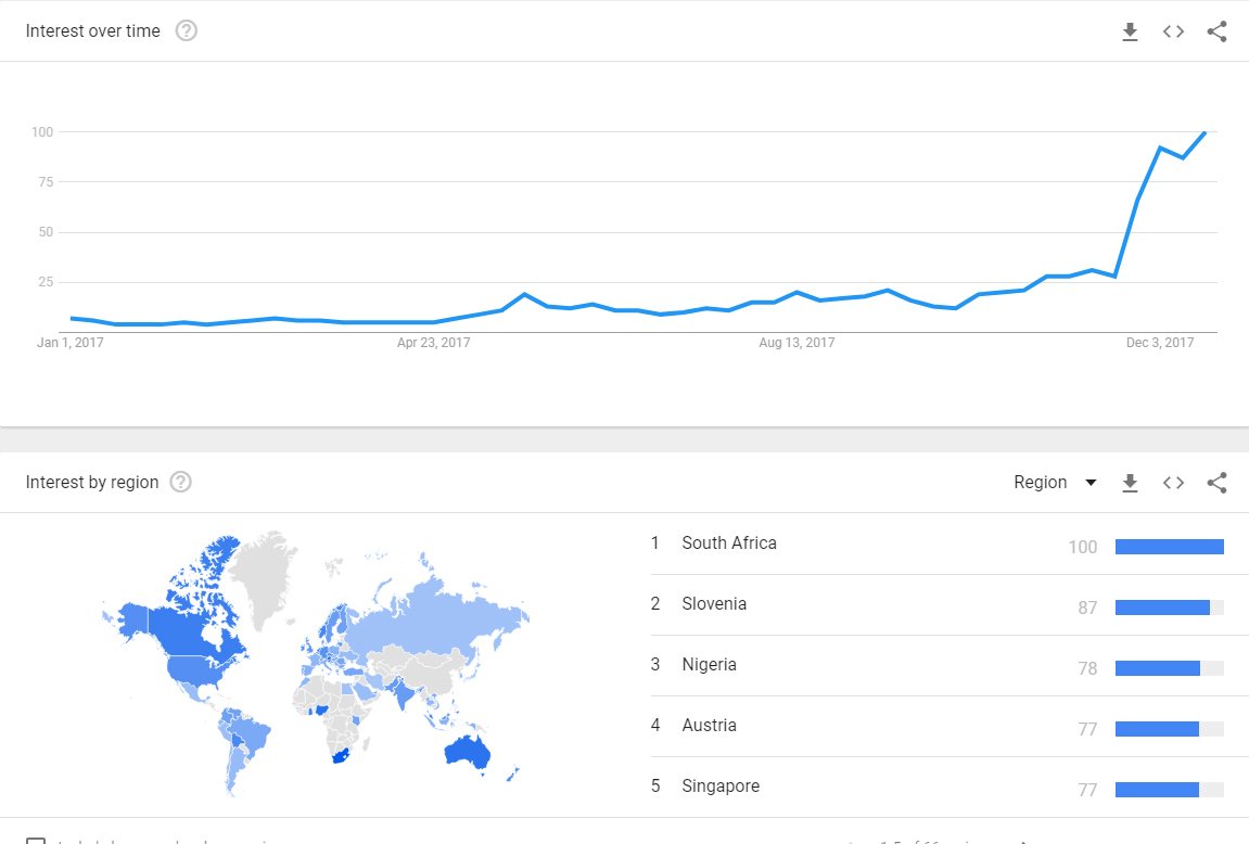 Bitcoin came in at an extremely respectable number two on the Google Trends global news list. It beat out topics like the solar eclipse, North Korea, and the horrific Las Vegas shooting that left 58 innocent people dead and a staggering 546 injured.