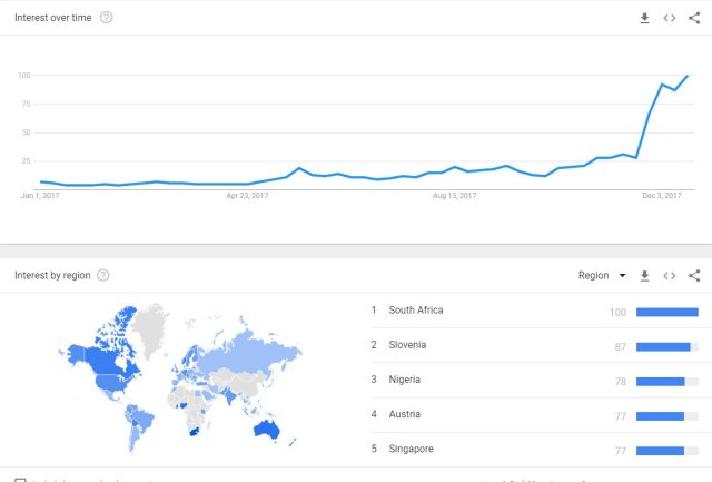 No matter how you slice it, 2017 was the year of Bitcoin and cryptocurrency in general. As the daddy of all crypto began to shoot up in value, people began to take notice. Headlines were made again and again as another price barrier was broken. So, how hot was the virtual currency in 2017? Google Trends released their list of the top trending topics for 2017, and Bitcoin Google searches came in at number two on their global news list.