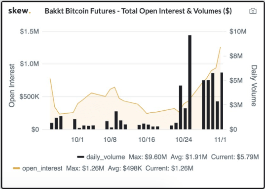 However, the volume has been increasing significantly in the month since Bakkt’s launch. The first few days averaged less than $1M in trading volume. However, at the end of October bitcoin futures volume had increased five times. In addition, open interest statistics have been rising exponentially in the past two weeks.