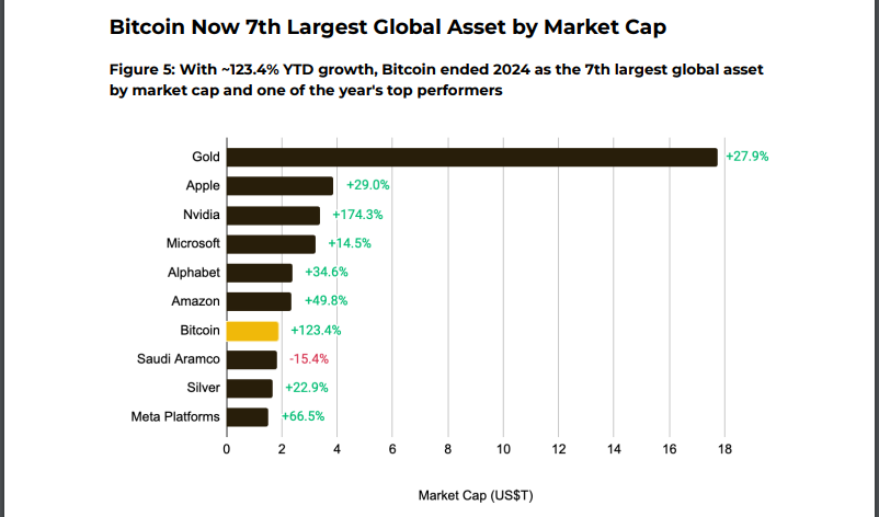 Bitcoin’s price skyrocketed to crazy new highs in 2024, leaving the financial world pretty stunned. It hit $108,000, which is a massive 124% jump for the year. That kind of climb pushed Bitcoin up to become the 7th biggest asset in the world by market value. It’s now sitting ahead of heavyweights like silver and Saudi Aramco, showing that digital assets are getting way more respect in traditional finance.
