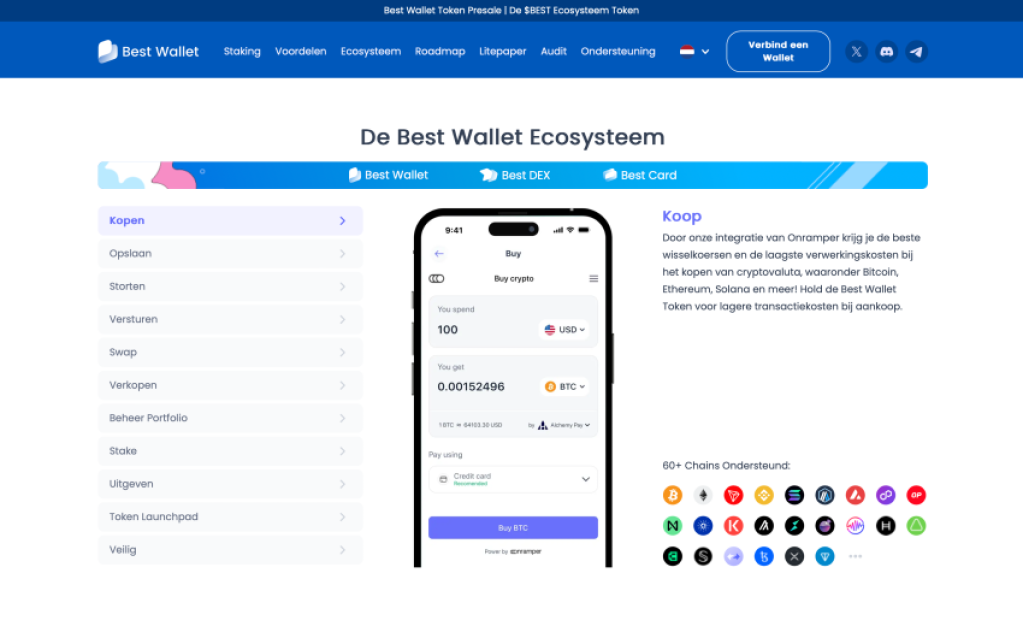 Je hebt nog even de tijd om toe te slaan voor de huidige lage prijs van $0,02455 per token voordat de volgende fase van de presale ingaat. Bij elke nieuwe fase hoort ook weer een nieuwe prijsverhoging. Op de officiële website van Best Wallet Token kun je eenvoudig je wallet koppelen of er snel nog eentje aanmaken. Daarna heb je de mogelijkheid om te betalen met crypto en je creditcard.