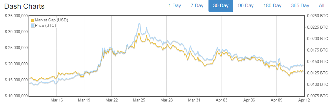DASH is now returning to normal, pre-rebrand price levels, which is around the 0.0125 BTC price range.